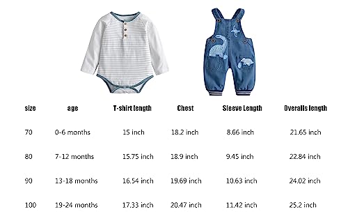 Suitable For Age:3-nine months;Appropriate for top:27.6 inch;weight:sixteen.5 lb;T-blouse Period:thirteen.9 inch;T-blouse Chest:19.69 inch;Sleeve Period:nine.84 inch;shoulder width:7.88 inch;Overalls Period:22 inch;Overalls Chest:17.3 inch;Waistline:20.47 inch