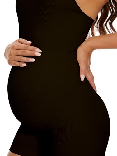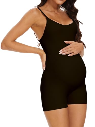 BDITANLE Maternity Workout Romper Pregnancy Yoga Ribbed One Piece Seamless Spaghetti Strap Jumpsuit