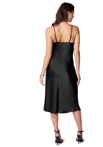 A soft polyester knit flaunts a sophisticated fitted look for the bebe Satin Slip Dress. Square neckline with adjustable shoulder straps. Lightly flared hemline. 100% polyester. Hand wash, line dry.