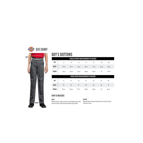 Dickies boy’s flex waist pant options an adjustable waistband and is to be had in four colours. Simple care, stain liberate, no iron and fade resistant. The sturdiness, comfort and price you’ve come to be expecting from Dickies. Exterior brand on back pocket. 7 3/4 ounce twill.