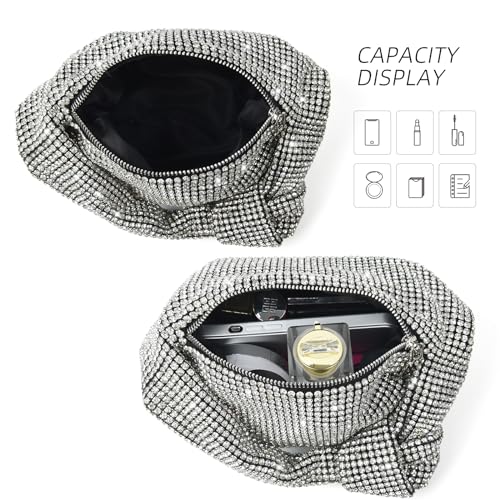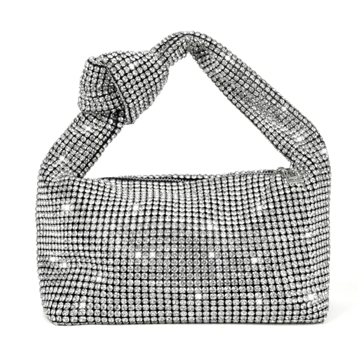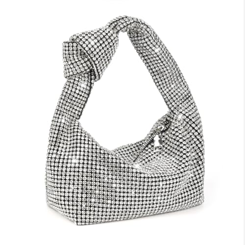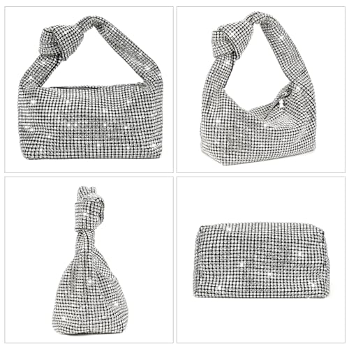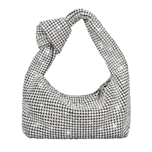 Bling Full Glitter Knotted Handbag for Women Crystal Rhinestone Hobo Dumpling Bag Diamond Evening Clutch Crossbody Bag