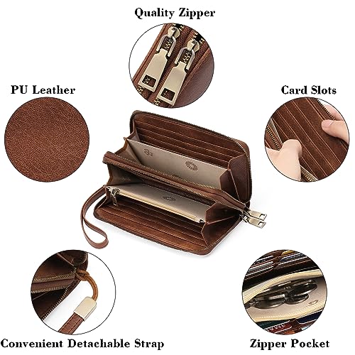 Practical Grip Hand Strap: This zip-around clutch wallet features an adjustable grip hand strap and a detachable wristlet that is ideal for busy women on the go and fits securely around your wrist, convenient and safe. The size of the wristlet wallets for women with cell phone pockets is 7.87″ x 4.33″ x 1.57″, large enough to hold most sized phones.