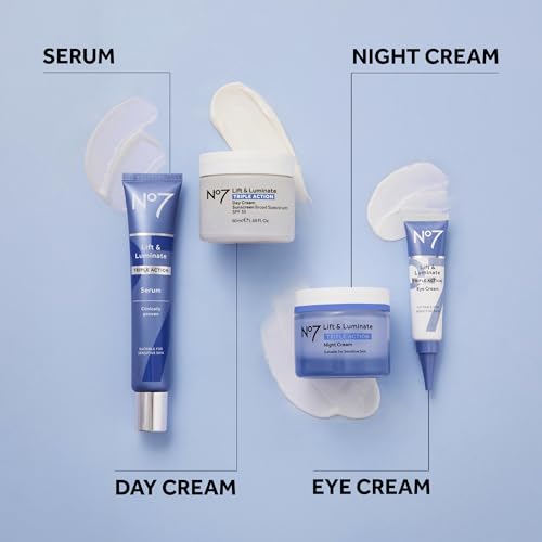 Anti Aging Lift & Luminate Formula – This anti wrinkle face serum features Matrixyl 3000+: No7’s powerful anti-wrinkle peptide formula. Similar to a collagen serum, this also contains our unique Firming complex with Hyaluronic acid and Hibiscus. No7’s unique pigmentation complex with Vitamin C.