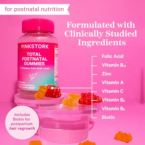 Postnatal Vitamins for Women: Should you continue your prenatal vitamin ritual after childbirth? OBGYNs recommend a postnatal multivitamin for at least six months postpartum – and for breastfeeding mothers, you should continue as long as you are nursing or pumping breast milk. Pink Stork Total Postnatal Vitamin Gummies are breastfeeding-friendly and can support your lactation goals. Take 2 gummies daily.