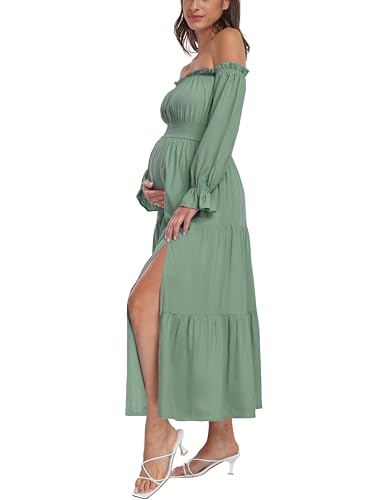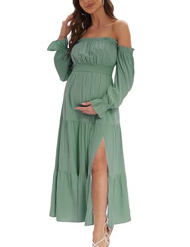 An elegant summer boho Maternity dress! This midi mermaid maternity dress is your new fashion. The fitted, body-hugging dress perfectly accentuates the curves of your body and shows off your baby bump. Short puff sleeves in summer dresses, overall small florals and ruffled hem add a touch of cuteness. The square neck open back dress is suitable for summer wear, baby shower,wedding.