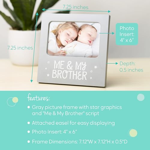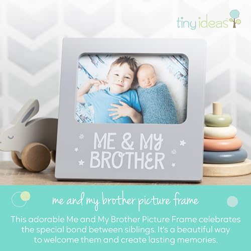 There’s no bond rather like the bond between siblings. Celebrate that special bond with Tiny Idea’s sentiment frame. This adorable white, wooden frame is a perfect, modern keepsake frame to cherish perpetually. The front of the frame is decorated in gray with “me & my brother.” The frame also includes an acid-free gray beveled mat to add a special touch around your adorable photo of your little ones. Have fun placing in your favorite 4” x 6” photo and decorating baby’s nursery with the frame. This frame includes an easel, so you’ll be able to place on any book shelf or table for decor. This frame also makes the perfect gift for a baby shower, birthday, or just because! Have fun wrapping this frame up and gifting to the new Mom, Dad, or Brother! As baby grows up they’ll all the time be capable of cherish their special bond with their brother and Tiny Idea’s sentiment frame. More Tiny Ideas products available- Tiny Ideas offers quite a few baby products perfect for any family expecting, baby’s first Christmas, or a baby shower gift; including holiday gifts, tree ornaments, baby frames, baby keepsakes, baby ornaments, pregnancy gifts, and baby gifts. Click on Tiny Ideas in this listing to see more baby options available! Dimensions: Frame: 7.12″ w x 7.12″ h x 0.5″ d // Photo insert: 4” x 6”