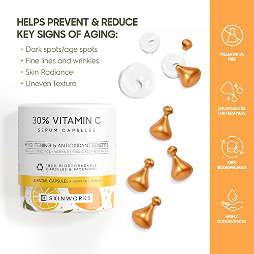 ✨ SKIN BRIGHTENING FACIAL CAPSULES – Clinically proven to help brighten and even skin, reduce dark spots, and give your face a tighter and lifted look. These preservative-free anti-wrinkle, anti-aging pods are encapsulated for freshness. **To reduce tingling/stinging sensation or help more easily absorb into the skin, mix any moisturizer, or with our Hyaluronic Acid capsules (B0BVGW6ZX9).