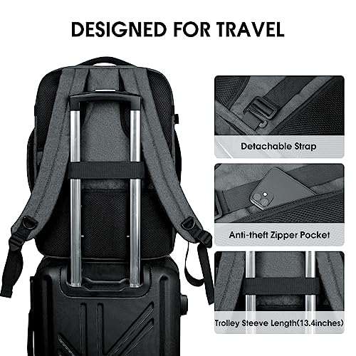 WANDF Travel Backpack For Spirit Airlines Personal Item Bag 18x14x8 with Wet Pocket, 17 Inch Laptop Backpack for Men Women(Grey)